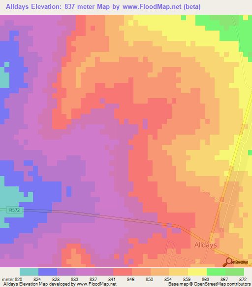 Alldays, South Africa Flood Map: Elevation Map, Sea Level Rise Map